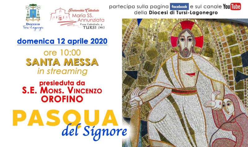 SANTA PASQUACelebrazione della Messapresieduta da S.E. Mons. Vincenzo Orofinoin diretta dalla Cattedrale di Tursiore 10.00 – domenica 12 aprile 2020